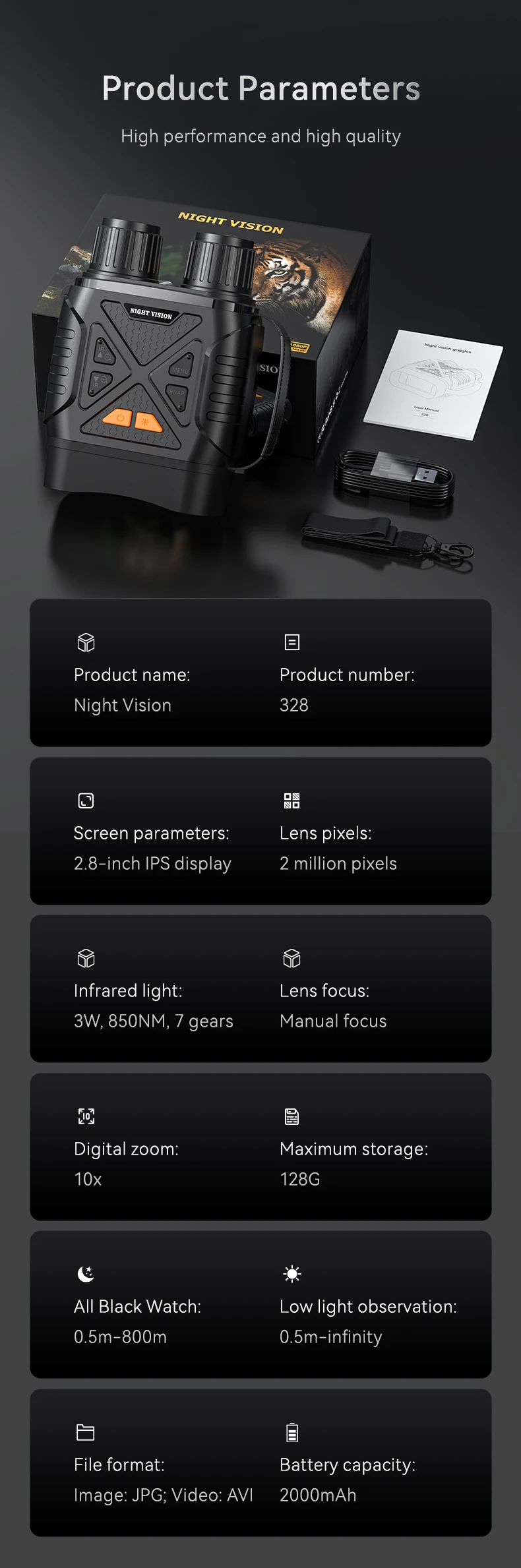 Unlock the secrets of the night with the 328 Digital Night Vision Binoculars, engineered for outdoor enthusiasts, hunters, and wildlife watchers. Whether you’re exploring in total darkness or low-light conditions, this device delivers crystal-clear imagery and reliable performance.
